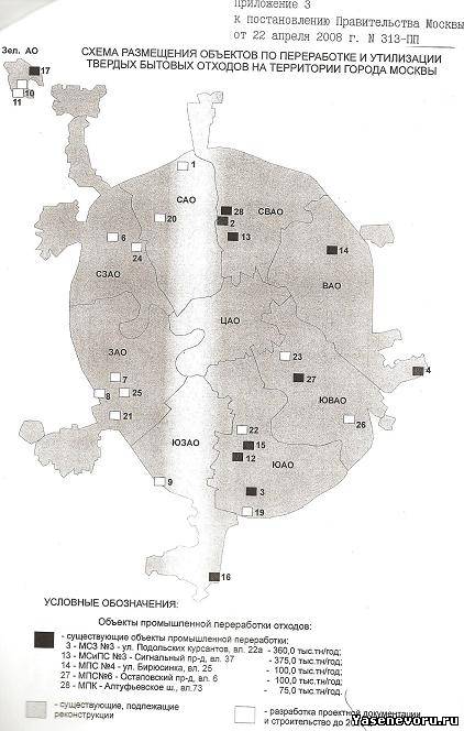 | и получил ответ из Правительства Москвы на предмет уточнения мест строительства заводов в городе...