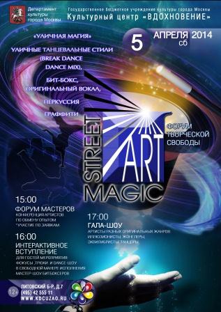| «Street Art Magic» Форум творческой свободы 5 апреля в Культурном центре «Вдохновение» - Форум творческой свободы «Street Art Magic»! Это громкое, молодежное арт-событие, на которое мы приглашаем всех желающих! Вы сможете узнать, что такое «уличная магия», увидеть искусство иллюзионистов, приобщиться к граффити и хип-хопу! В форуме примут участие артисты совершенно различных оригинальных жанров: иллюзионисты, жонглеры, эквилибристы, танцоры, артисты, работающие на стыке циркового и эстрадного искусства! Гала-шоу пройдет в интерактивном режиме: ведущие будут активно привлекать к участию людей из зала, делая зрителей полноценными участниками форума. «Street Art Magic» охватывает следующие жанры: «уличная магия» (фокусы и трюки в свободной манере исполнения), уличные танцевальные стили (Хип-хоп, Street Dance, Dance Mix, Break dance), бит-бокс, оригинальный вокал, перкуссия и граффити. Форум «Street Art Magic» это: 15.00 «Форум мастеров»: Конференция артистов по обмену опытом. (Участие по заявкам - приём до 4 апреля. Заявки принимаются на e-mail: director@degeo.org). 16.00 Интерактивное вступление для гостей: фокусы, трюки, dance-шоу в свободной манере исполнения мастер-шоу бит-боксеров. 17.00 Гала-шоу: артисты разных оригинальных жанров: иллюзионисты, жонглеры, эквилибристы, танцоры. Для иллюзионистов форум дает возможность не только посоревноваться, но и поучится друг у друга новому, и что немаловажно - найти новых друзей. Когда в одном месте собирается столько единомышленников, занимающихся любимым делом, коммуникабельных и целеустремленных, каждый из них все больше убеждается, что находится на правильном пути. Мы приглашаем всех интересующихся стрит-артом, граффити, уличной культурой, искусством! Организаторам будет, чем порадовать участников и гостей форума. Показательные выступления признанных лидеров в иллюзионном искусстве не оставят равнодушными никого. Море улыбок и хорошего настроения, ждут всех, кто придет на форум «Street Art Magic»! 5 апреля 16.00 Вход свободный! Телефон для справок: 8 (495) 425–55-11 http://kdcuzao.ru/Добавлено (21.03.2014, 16:40) --------------------------------------------- «Астор Пьяццолла. История танго» 5 апреля Культурный центр «Вдохновение» и «Москонцерт» представляют удивительный концерт «Астор Пьяццолла. История танго»! Астор Пьяццолла – известный аргентинский музыкант и композитор второй половины двадцатого столетия. Родоначальник стиля, получившего название «Танго Нуэво». Благодаря уникальному композиторскому дару Астора Пьяццоллы - «Великого Астора», как его называют в Аргентине - музыка танго, вобрав в себя элементы джаза и классической музыки, поднялась на невиданную прежде высоту. Его сочинения в корне перевернули традиционное танго, представив его в современном ключе. Выйдя за пределы танцплощадок, танго Пьяццоллы покорили сцены крупнейших концертных залов мира, завладели сердцами известнейших музыкантов и миллионов слушателей. Концерт назван "История танго", по названию одного из самых ярких и известных произведений Астора Пьяццоллы. Приходите и проникнитесь уникальными мелодиями танго! В программе: «Прощай, Нонино», «Танго-этюды», «Милонга ангела», «Смерть ангела», «Времена года в Буэнос-Айресе», Decarisimo, Jacinto, Chiclana, «Либертанго», «Забвение», знаменитая сюита «История танго». Исполнители: "Золотой аккордеон России" Сервер Абкеримов Лауреаты международных конкурсов Наталья Белоколенко (фле